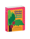 Chicka Chicka Boom Boom Monkey Soft Toy, Chicka Chicka Boom Boom Board Book, and Chicka Chicka Boom Boom onesie wrapped in daffodil yellow tissue and a colorful YOTTOY gift bag. Gift bag includes a bright green satin ribbon and a hand-written personalized YOTTOY gift card.