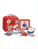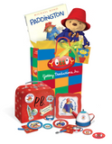 Classic Paddington Bear 10" Soft Toy, Paddington 14-Piece Tin Tea Set, and "Paddington” Hardcover wrapped in daffodil yellow tissue and a colorful YOTTOY gift bag. Gift bag includes a bright green satin ribbon and a hand-written personalized YOTTOY gift card
