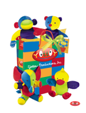 YOTTOY's Velveteen Monkey, Bear, and Elephant Soft Toys Gift-Wrapped in daffodil yellow tissue and a colorful YOTTOY gift bag. Gift bag includes a bright green satin ribbon and a hand-written personalized YOTTOY gift card.