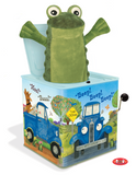 Take a turn with Little Blue Truck and his farm friends with this new spin on the classic Jack-in-the-box. Hear "Pop Goes The Weasel" as the crank is turned until a plush Toad pops out! The beautifully decorated tin box features Jill McElmurry's illustrations of Little Blue Truck traveling down a muddy country road. Made of durable sturdy metal, this Jack-in-the-Box provides long-lasting fun and helps little ones develop auditory and visual awareness through play.