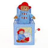 This musical Paddington Jack-in-the-Box provides countless opportunities to develop sensory stimulation and hand-eye coordination as the crank turns and the lid pops open to reveal a 5” soft plush Paddington puppet inside! Paddington is made of soft velour with embroidered details. Playing the traditional nursery rhyme “London Bridge is Falling Down” and decorated with detailed designs on all sides of the box, this fascinating cause-and effect toy helps children to develop both auditory and visual awareness.