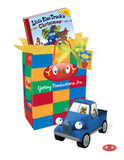 Little Blue Truck Soft Toy and “Little Blue Truck’s Christmas” HC -Wrapped in daffodil yellow tissue and a colorful YOTTOY gift bag. Gift bag includes a bright green satin ribbon and a hand-written personalized YOTTOY gift card.