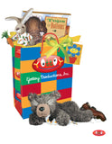 Bear 12" soft soy, and Hare 9" soft toy Gift-Wrapped in daffodil yellow tissue and a colorful YOTTOY gift bag. Gift bag includes a bright green satin ribbon and a hand-written personalized YOTTOY gift card.