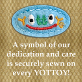 Shorter and plumper than his friend Frog, Toad sits with open arms, snuggly soft in his fully lined green furry jacket with black felt buttons and red hand-stitches, tan pique pants, and grosgrain ribbon belt. Made of caramel-colored soft plush, detailed embroidered eyes with a heartfelt expression, it's hard to resist giving Toad the warm hug he longs for.