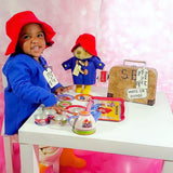 Our award-winning Paddington Bear has soft honey brown plush with black sparkling eyes. He wears a red felt hat, bright yellow Wellington boots and the legendary tag that reads "Please Look After This Bear". His blue hooded coat comes complete with working wooden toggle buttons, and cuffs with yellow embroidered buttons.